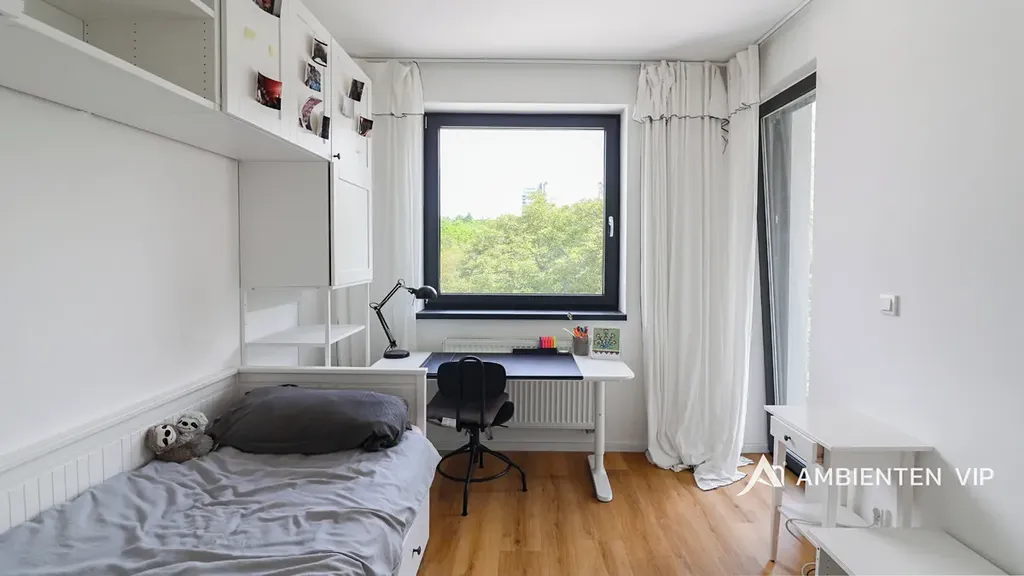 Pokoje jsou vybaveny postelemi 200x140cm, pracovním stolem se židlí a stolkem pro tiskárnu, v celém bytě i pokojích jsou vestavěné skříně pro dostatek úložného prostoru.