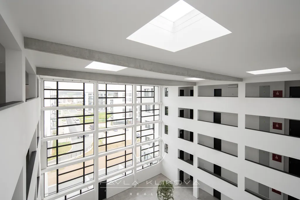 Pronájem krásného a zcela nového bytu o dispozici 3+kk o výměře 65,7 m², který se nachází v novostavbě v Plzni – Skvrňanech, ul. Františka Kováříka. Byt je situovaný v 5. nadzemním podlaží cihlového domu s výtahem, který byl dokončen v roce 2025. Jedná se o velmi světlý byt s okny orientovanými na západ, sever i východ, z obývacího pokoje je krásný nerušený výhled. Dům je architektonicky velmi zajímavý, s velkým atriem. Byt sestává z obývacího prostoru s kuchyňským koutem, ložnice a dalšího samostatného pokoje. Kuchyňská linka je vybavena spotřebiči (indukční varná deska, el. trouba, mirovlná trouba, myčka, lednice a mrazák). Koupelna je se sprchovým koutem, WC samostatné. V předsíni jsou vestavěné skříně, prostor pro pračku a okna, které celý prostor krásně prosvětlují. V bytě jsou dvě klimatizační jednotky (v kuchyni a předsíni), vinylové podlahy a keramická dlažba v koupelně a na WC. Okna mají předokenní elektrické žaluzie. K bytu náleží garážové stání v podzemní garáži a sklep. Klidná lokalita na okraji sídliště, jen pár metrů od konečné tramvaje č. 2. Byt je k nastěhování od 1.4.2026. Nájem 23 000 Kč/měsíc, zálohy 3.000 Kč/měsíc + elektřina, jistota 46 000 Kč, provize 27 830 Kč.