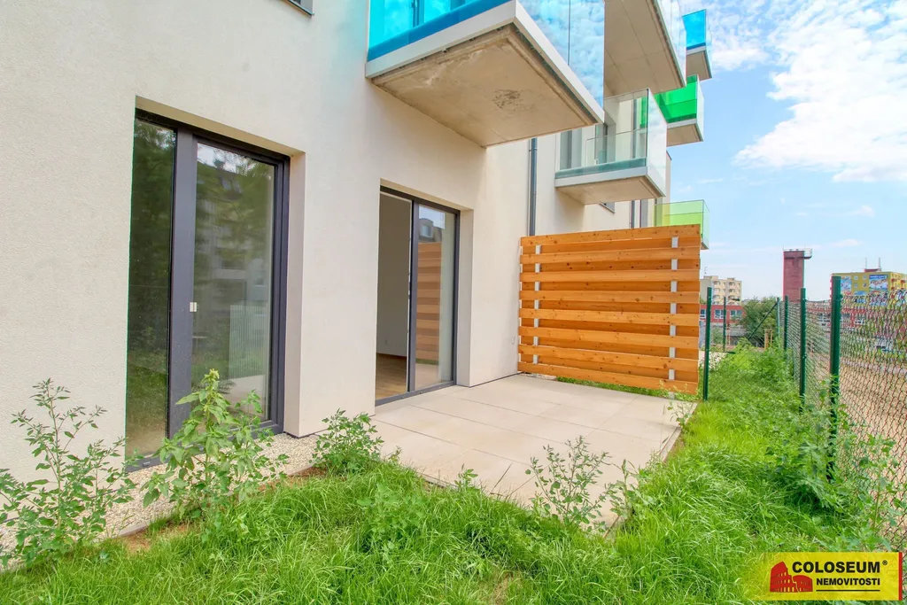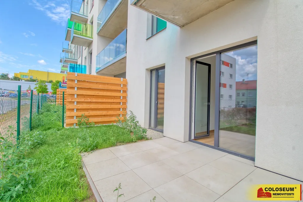 Byt se skládá z obývacího pokoje s kuchyňským koutem, ložnice, koupelny s toaletou, předsíně, komory a zahrádky. Byt se pronajímá nevybavený. Je osazen novou kuchyňskou linkou, sklokeramickou varnou deskou, troubou a lednicí. K bytu je možné pronajmout parkovací stání v podzemní garáži, vlastní venkovní stání a sklepní kóji. Pro lepší představu možného budoucího stavu přikládáme vizualizace obývacího pokoje a ložnice.