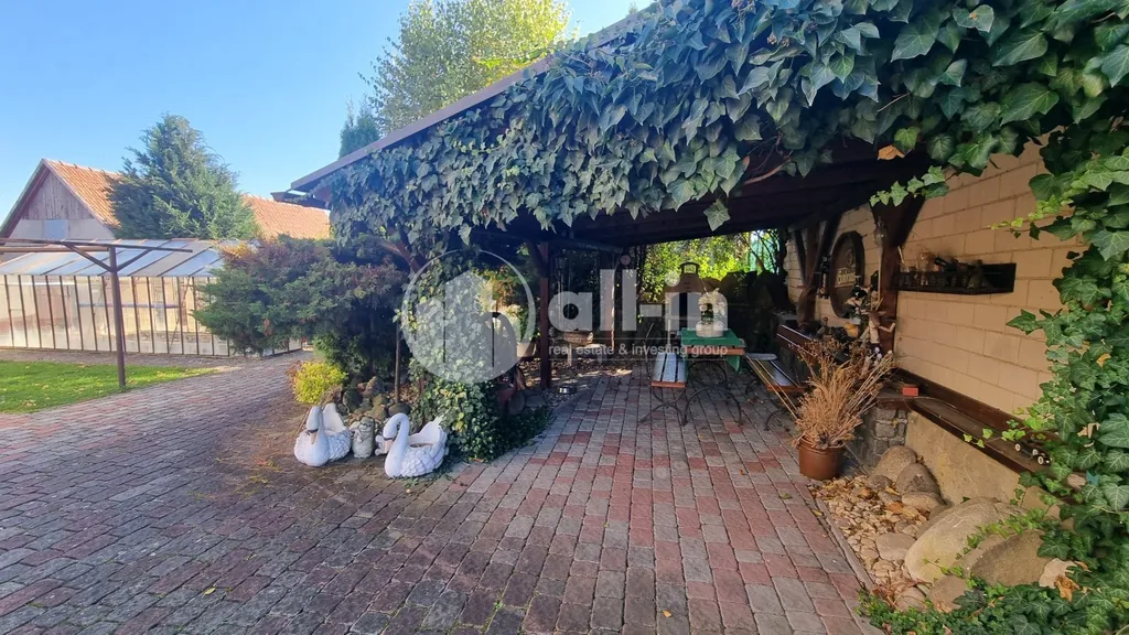 Na zahradě je možné využít pergolu, sklípek, skleník a kůlnu. Nemovitost má vlastní studnu.