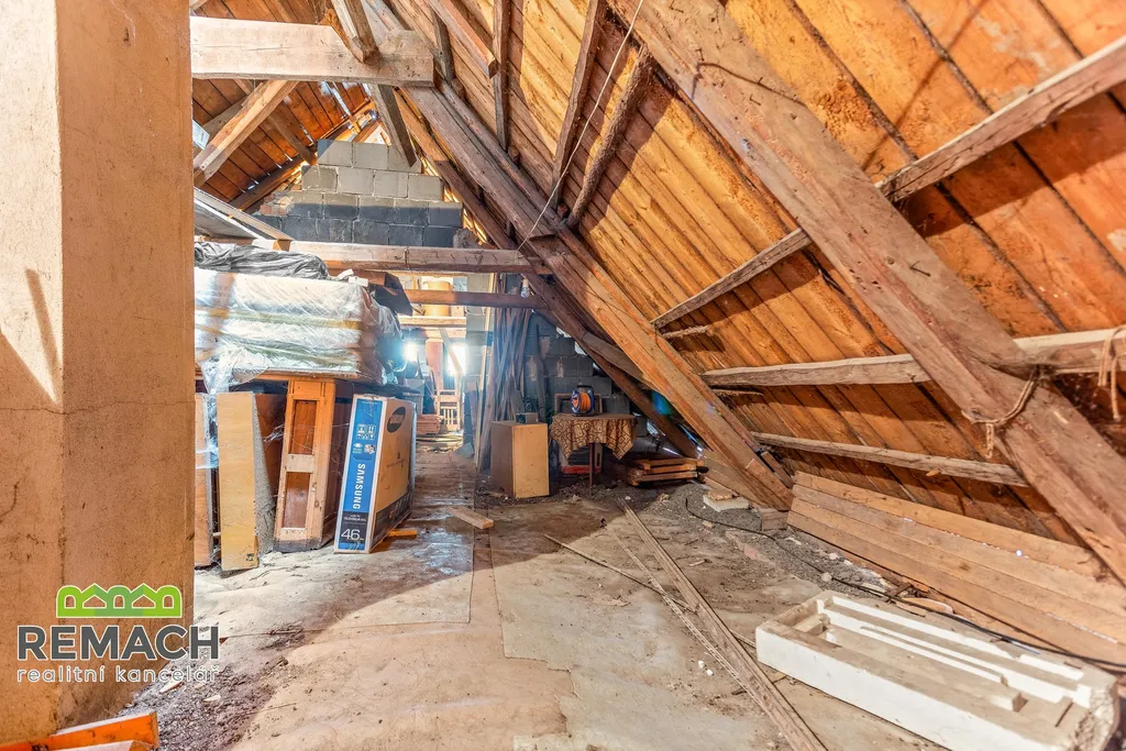 Další velkou výhodou je prostorný půdní prostor, který je vhodný k vybudování dalšího obytného patra a rozšíření užitné plochy domu dle vašich představ.