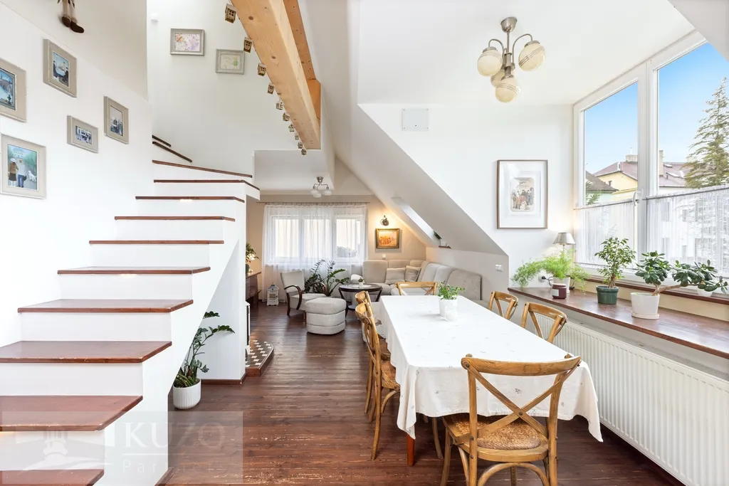 Nabízíme ke koupi výjimečný mezonetový byt o užitné ploše 109 m², nacházející se ve 3. nadzemním podlaží komorního bytového domu s pouhými třemi bytovými jednotkami, v klidné a velmi vyhledávané lokalitě ulice Boženy Němcové v centru Mladé Boleslavi. Jedná se o byt s opravdu jedinečným charakterem, který zaujme svou otevřeností, světlem a krásnými výhledy do zeleně za domem.
