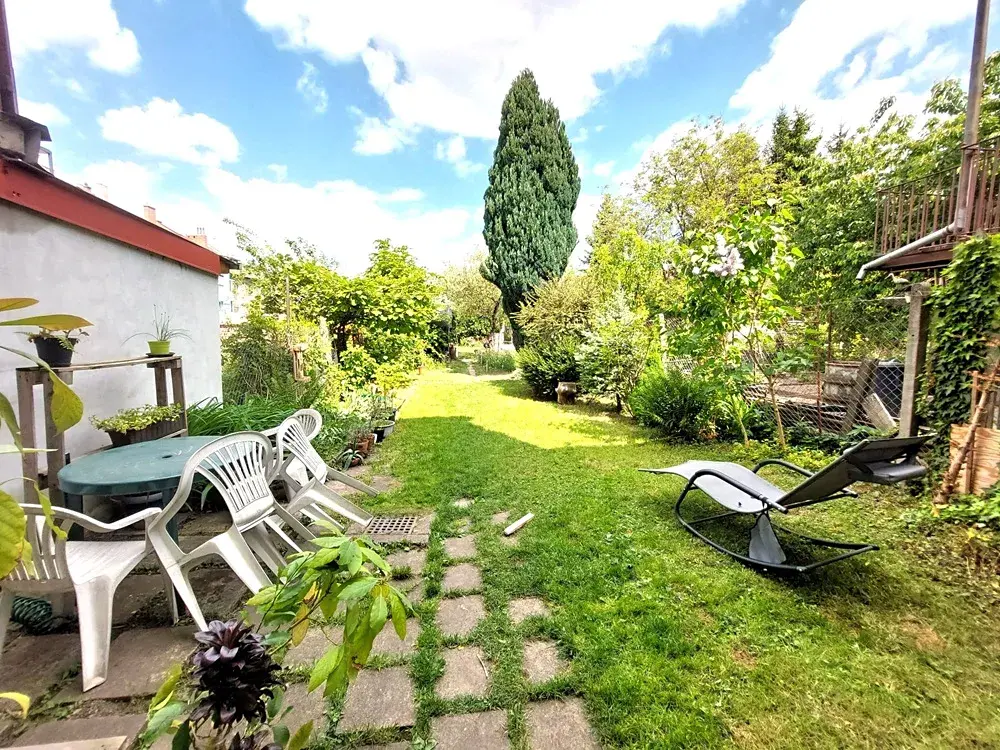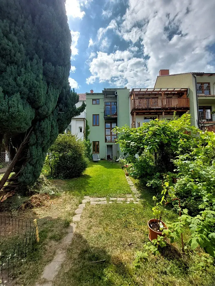 Jedná se o prostorný byt velikosti 2+kk o celkové ploše 48 m² umístěný v 3. patře/3 cihlového domu bez výtahu s možností spoluužívání zahrady za domem.