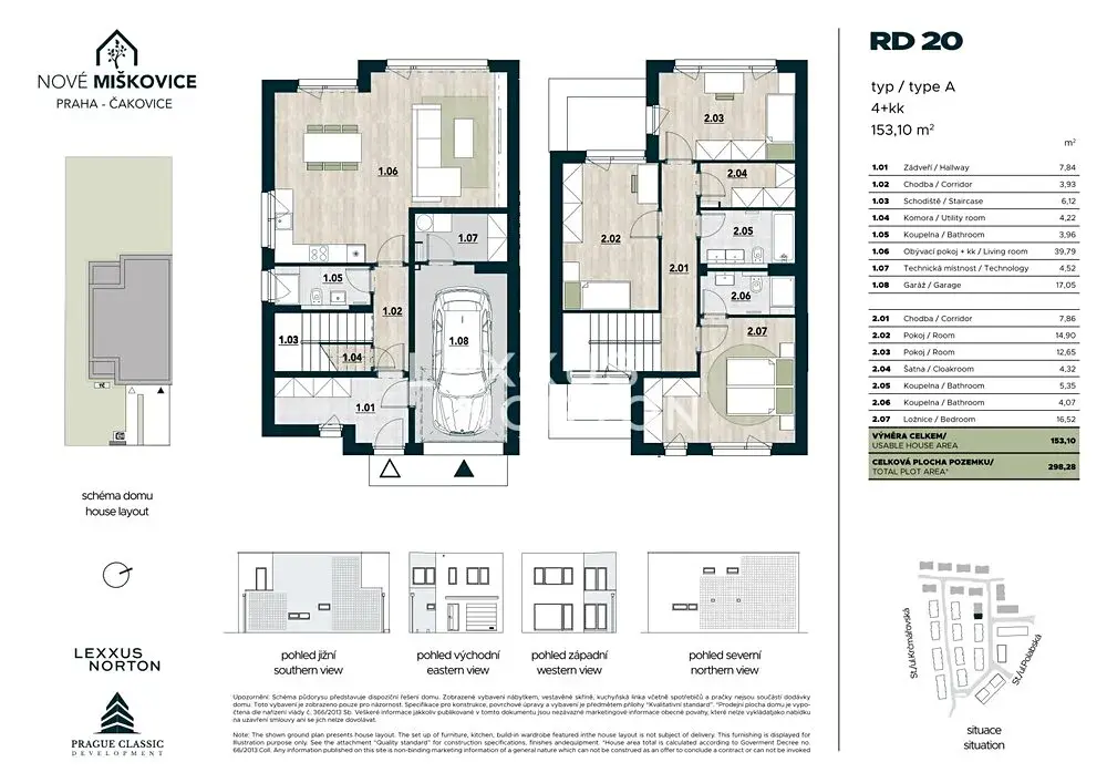Nabízíme k prodeji rodinný dům o dispozici 4+kk v nově vznikající rezidenční čtvrti Nové Miškovice, který vyniká užitnou plochou 153,10 m² a vlastním pozemkem o velikosti 298,28 m². Dům je navržen s důrazem na praktické rodinné uspořádání, dostatek prostoru a přirozené propojení interiéru se zahradou, které se stává každodenní součástí bydlení.