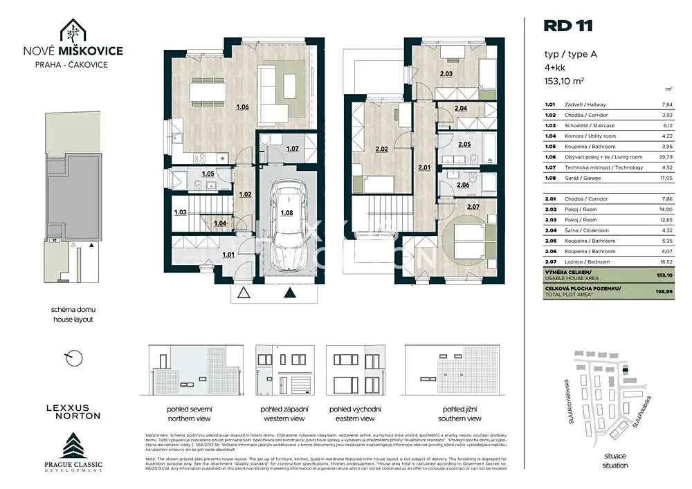 Nabízíme k prodeji rodinný dům o dispozici 4+kk v nově vznikající rezidenční čtvrti Nové Miškovice, který vyniká užitnou plochou 153,10 m² a vlastním pozemkem o velikosti 199 m². Dům je navržen s důrazem na praktické rodinné uspořádání, dostatek prostoru a přirozené propojení interiéru se zahradou, které se stává každodenní součástí bydlení.