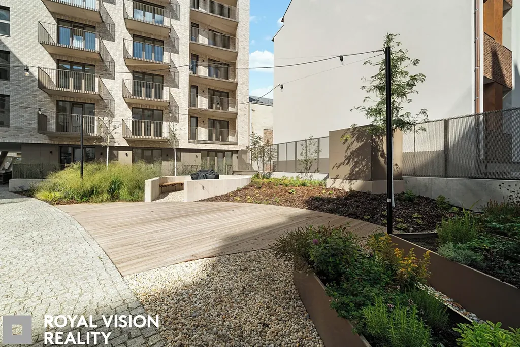 - Zelený vnitroblok s BBQ zónami a dětským hřištěm