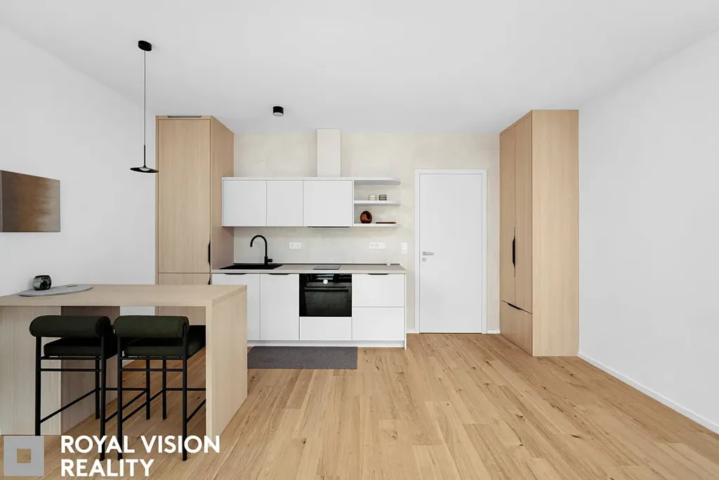 Pronájem moderního bytu 1+kk s balkonem, sklepem a parkovacím stáním – Pekárenský dvůr, Brno