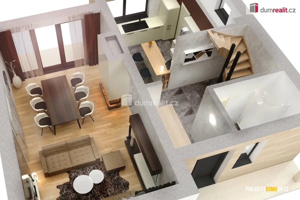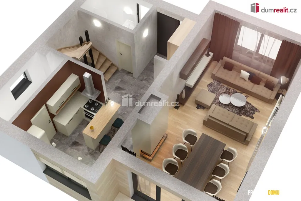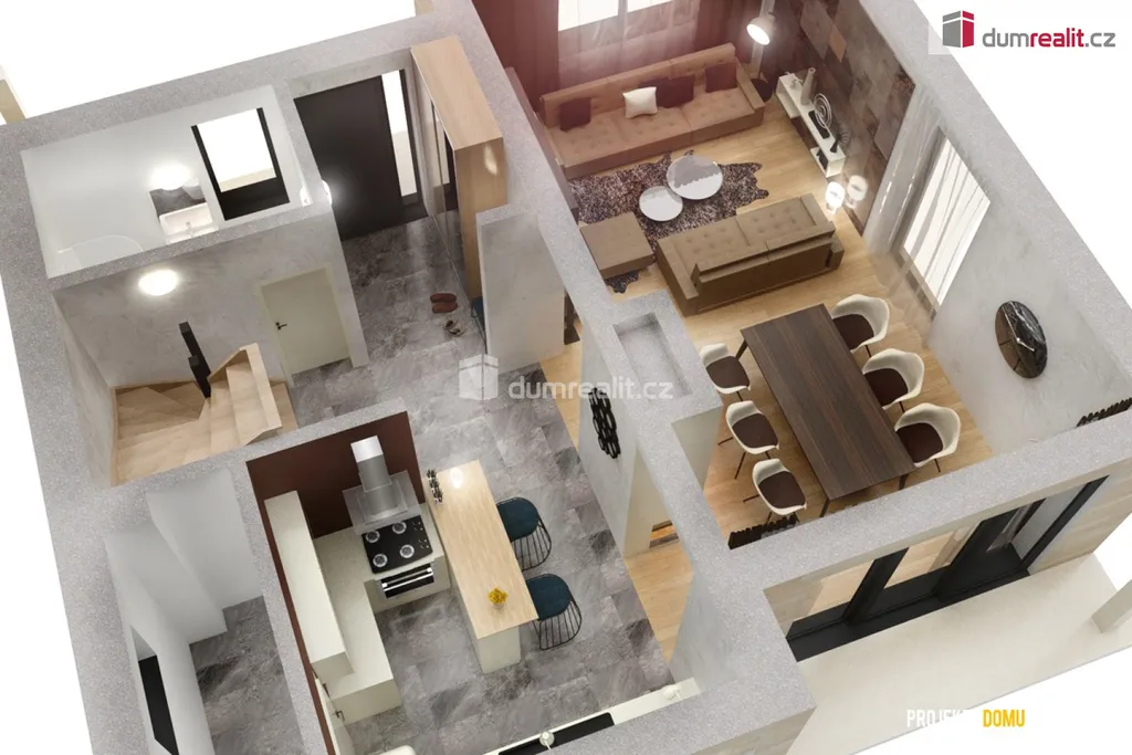 Dům o dispozici 5+kk s promyšleným dvoupodlažním uspořádáním poskytuje dostatek soukromí a prostoru pro velkou rodinu.