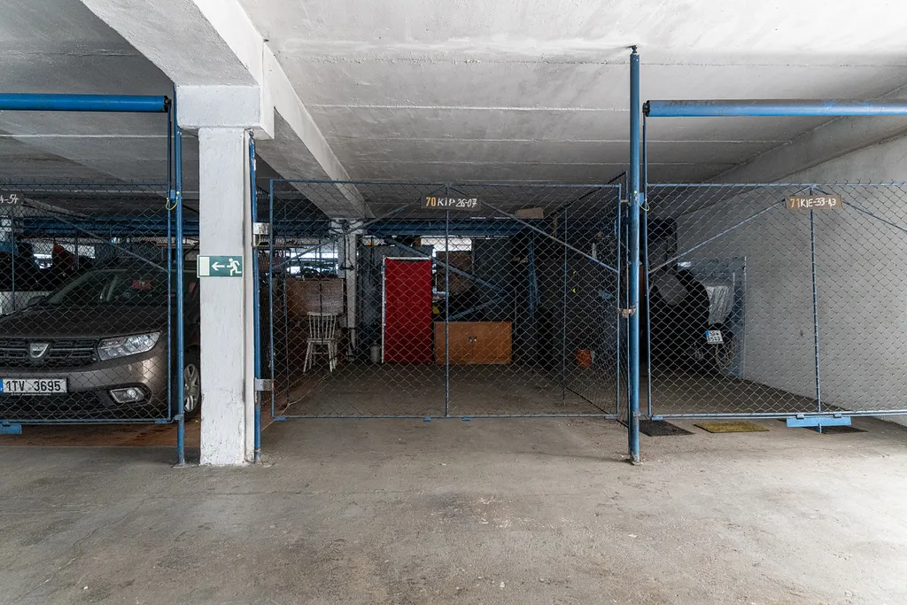 Prodej družstevního podílu souvisejícího s nájmem garážového stání ve zděném garážovém areálu na ulici Na Nábřeží. Jedná se o hlídaný areál s klecovými, uzamykatelnými kójemi. Velikost garážového stání je 15,40 m². Areál je vybaven vraty o velikosti š 2,37m x v 2,070m, osvětlením, zásuvkou, k dispozici jsou také toalety, rampa a voda na mytí a údržbu auta.
