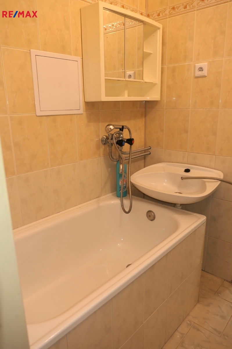 Prostor sestává z ložnice, samostatného kuchyňského koutu a koupelny včetně WC, bojleru a pračky; prostor nemá vlastní sklepní kóji.