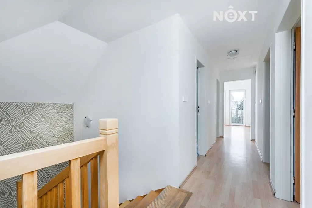 V prvním podlaží domu se nachází obývací pokoj s kuchyňským koutem a krbem, toaleta a technická místnost. Po schodech se dostáváme do druhého podlaží, kde na nás čeká ložnice s šatnou, dva dětské pokoje, koupelnu s vanou, sprchovým koutem, WC a komoru.