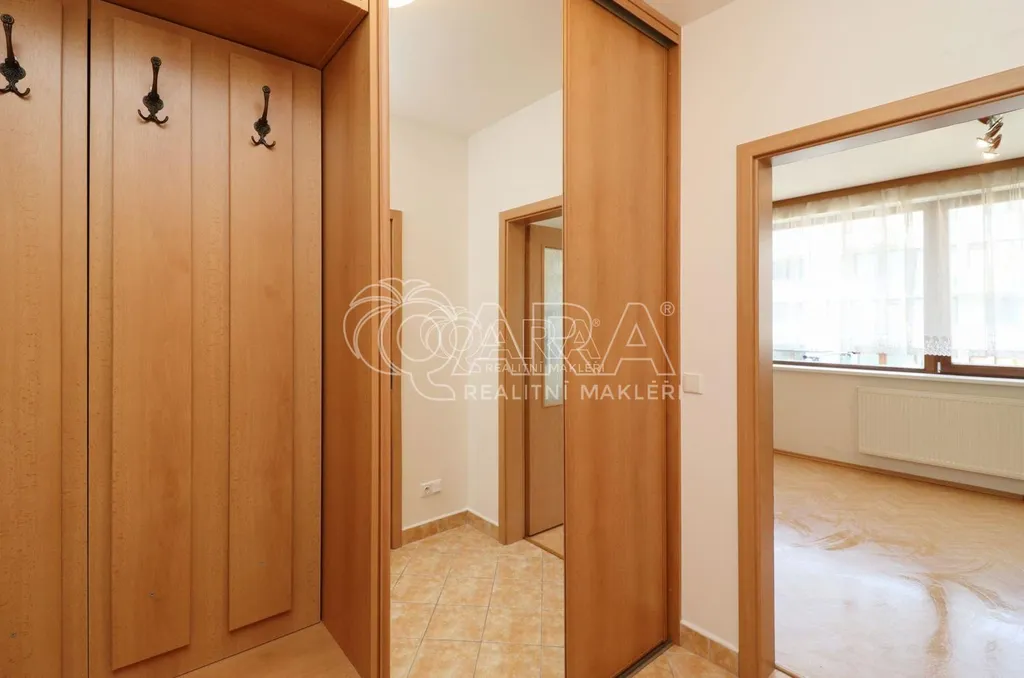 Pronajímá se částečně vybavený, v bytě zůstává kuchyňská linka s indukční varnou deskou, trouba, digestoř, lednice a pračka v koupelně. Ve výklenku možnost umístění postele na spaní. V předsíni naleznete šatní skříň se zrcadlem.