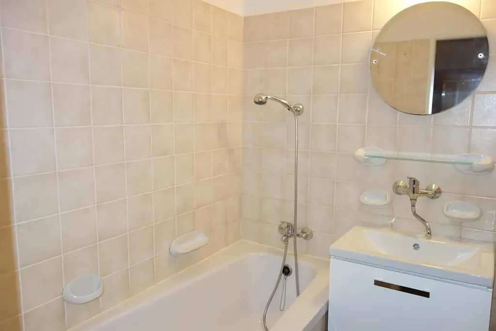 Klidný byt a přitom v dosahu centra (10 min. Václavské nám.) se nachází v 5. patře cihlového zatepleného domu s výtahem. Byt po renovaci vinyl. podlahy a renovované parkety, nová kuchyňská linka se spotřebiči (pračka, sušička, myčka, plyn. varná deska, el. trouba, lednice,mikrovlnná trouba).