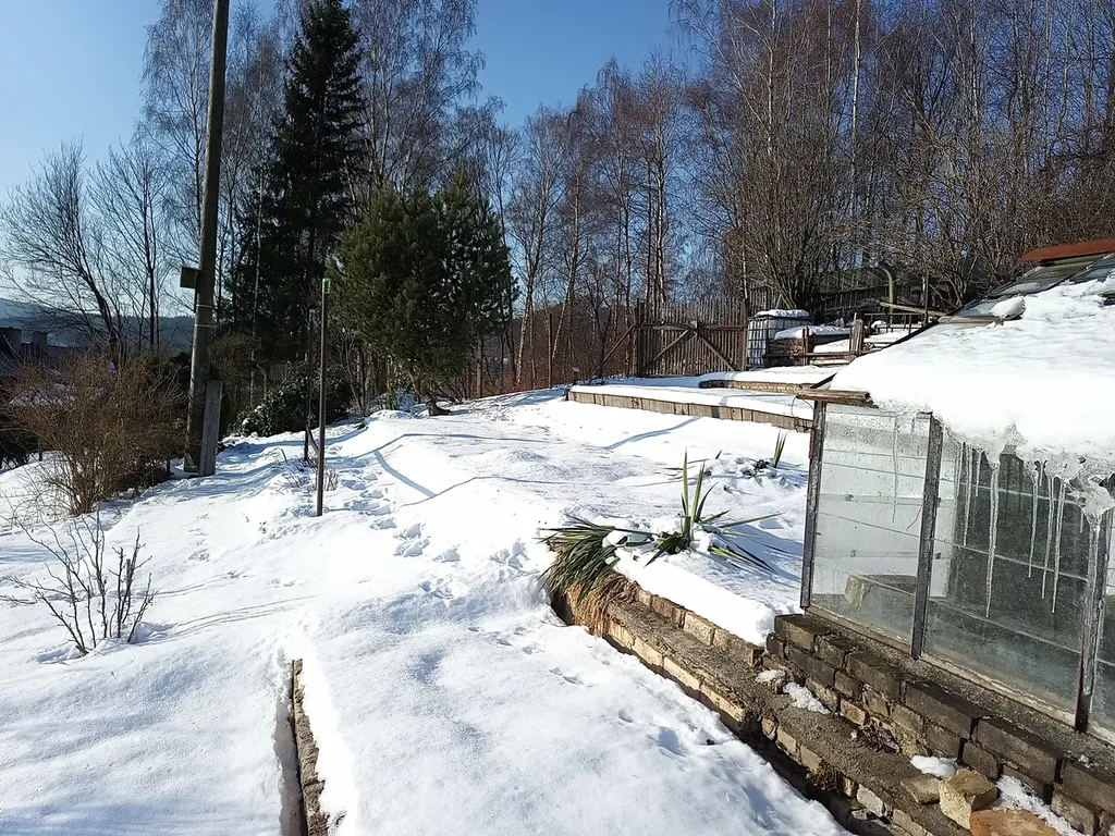 Na prodej pozemek se zahradní chatou, venkovním posezením a upravenými záhony v zahrádkářské kolonii osazené do jižního svahu v obci Desná část Desná I.