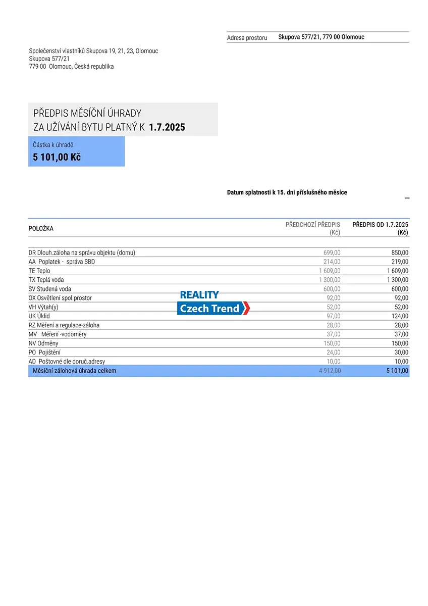 Byt o užitné ploše 67,9 m² prošel kompletní rekonstrukcí a je připravený k okamžitému bydlení. Součástí je lodžie o velikosti 3,5 m² a sklepní kóje 2 m². Díky nové klimatizaci je v bytě příjemně i v horkých dnech. Dům je po revitalizaci se zateplenou fasádou.