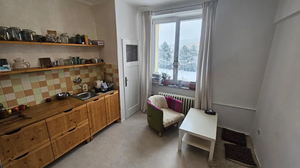 Dlouhodobý pronájem - pěkného částečně modernizovaného bytu v osobním vlastnictví o velikosti 1 + 1 s balkonem v Příbrami VII, ulice Komenského 409. Byt se nachází v opraveném cihlovém domě ve 2.patře. V domě není výtah. Velice pěkný výhled z bytu - velké soukromí. Byt prošel před časem modernizací. Celková výměra bytu je 54 m2. V bytě zůstává kompletní kuch. linka včetně spotřebičů + lednice, pračka v koupelně a vestavné úložné fochy v pokoji. Byt je volný k nastěhování od 1.3.2026. Velice dobré a klidné bydlení. V okolí je zastávka MHD i pid a veškerá občanská vybavenost. Nájemné 9.942,-Kč + 3.558,-Kč záloha na služby / v ceně je i záloha na elektřinu i plyn /. Celkem je měsíční platba 13 500,-Kč. Platí se při podpisu nájemní smlouvy kauce 13 500,-Kč + provize 13 500,-Kč. Nájemné se platí vždy do 15 dne v daném měsíci. Nájem je pro 1 až 2 os. Podrobné info v RK.