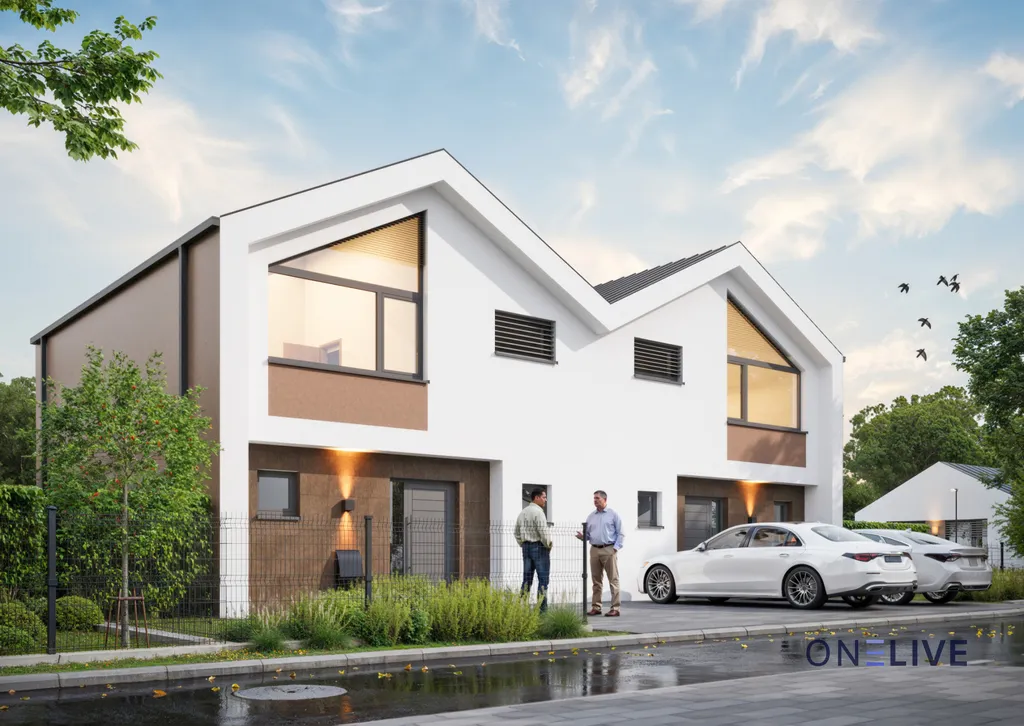 Nabízené dvojdomy mají podlahovou plochu 107,56 m², terasu a závětří o celkové výměře 20,20 m² a pozemky o velikosti od 265 m² do 414 m². Dispozičně jsou řešeny v 1. nadzemním podlaží obývacím prostorem s kuchyňským koutem a přímým vstupem na terasu, přičemž součástí kuchyňského koutu je také samostatná spíž sloužící jako praktický úložný prostor pro potraviny. Dále se zde nachází koupelna se sprchovým koutem, toaletou, umývátkem a technickým zázemím. Do 2. nadzemního podlaží vede železobetonové schodiště, kde jsou umístěny dva dětské pokoje, ložnice a druhá koupelna s vanou, dvojumyvadlem a toaletou.