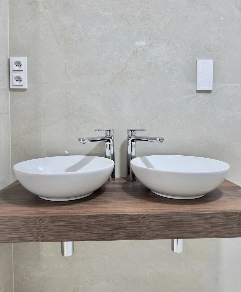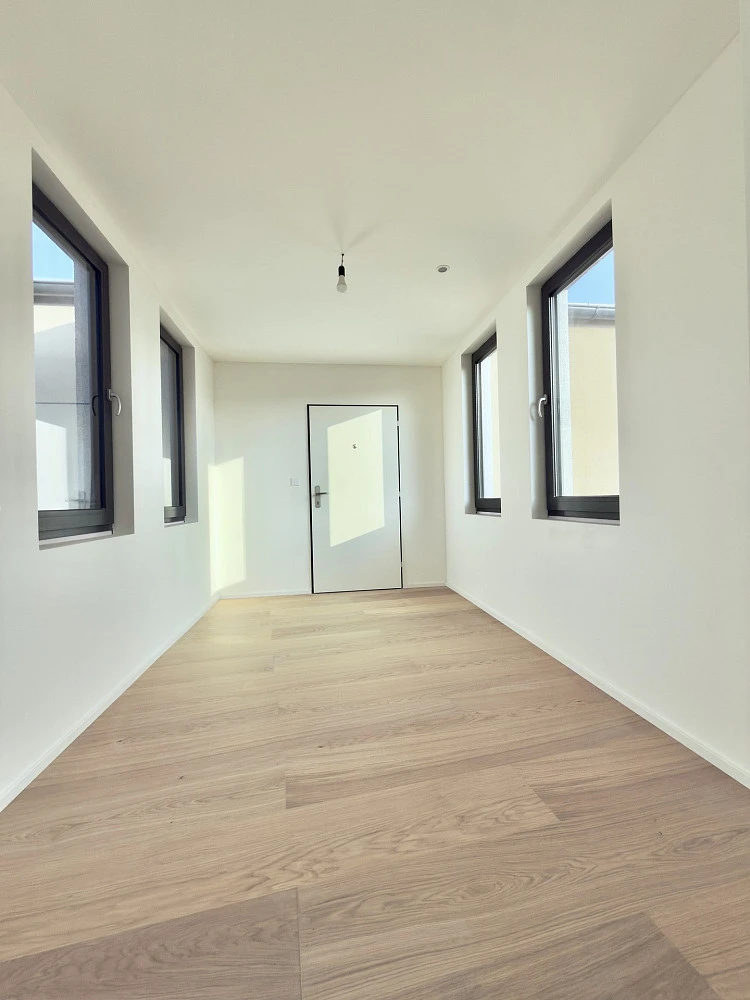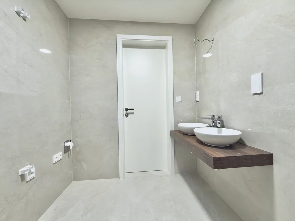 Byt nabízí vysoce nadstandardní provedení – dřevěná hybridní podlaha, velkoformátové obklady a dlažby v koupelně a na WC, bezfalcové dveře, sanita Villeroy & Boch, baterie Hansgrohe a kompletní elektroinstalace vč. dotykových vypínačů, zabezpečovacího a kamerového systému.
