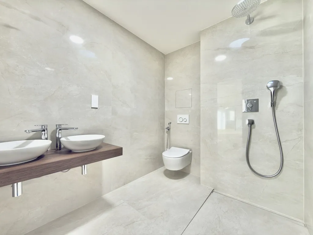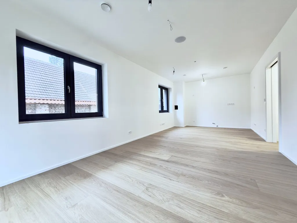 Byt nabízí vysoce nadstandardní provedení – dřevěná hybridní podlaha, velkoformátové obklady a dlažby v koupelně a na WC, bezfalcové dveře, sanita Villeroy & Boch, baterie Hansgrohe a kompletní elektroinstalace vč. dotykových vypínačů, zabezpečovacího a kamerového systému.