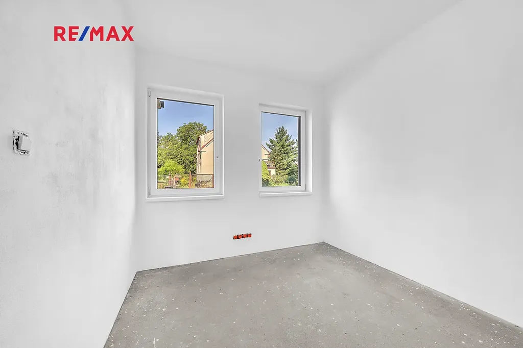 Součástí dokončení jsou plovoucí podlahy, interiérové dveře, terasa o výměře 17 metrů a tři parkovací stání ze zámkové dlažby a bílý finální nátěr fasády.