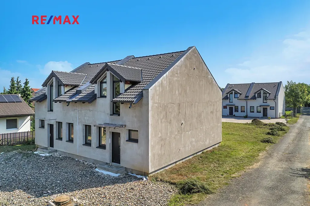 Pak vás možná osloví tato novostavba rodinného domu (polovina dvojdomu) ve Škvorci – prostorný dům s vlastní zahradou, který kombinuje výhody bydlení u hlavního města a klid venkovského prostředí.