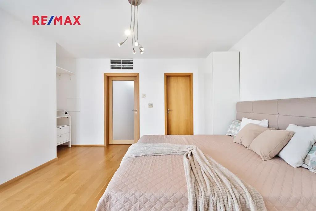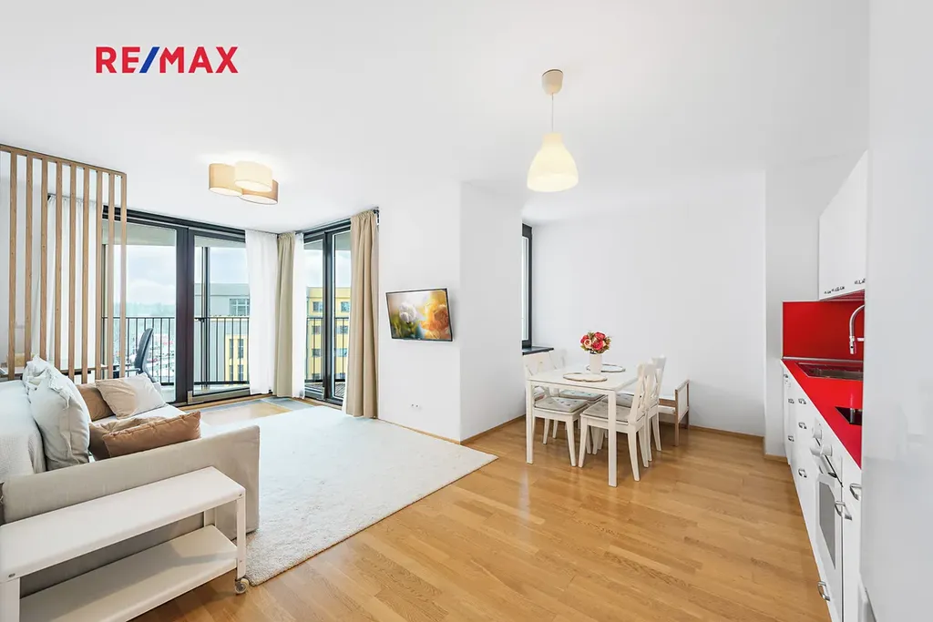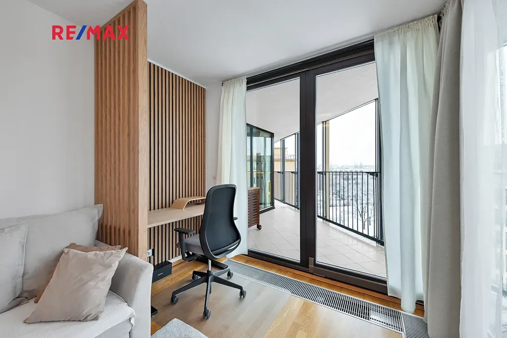 Rádi Vám představíme exkluzivní nabídku: Pronájem kompletně zařízeného, slunného bytu 2+kk s plochou 64 m², venkovní terasou 28 m², parkovacím místem v prestižní rezidenci Central Park Praha v Žižkově.