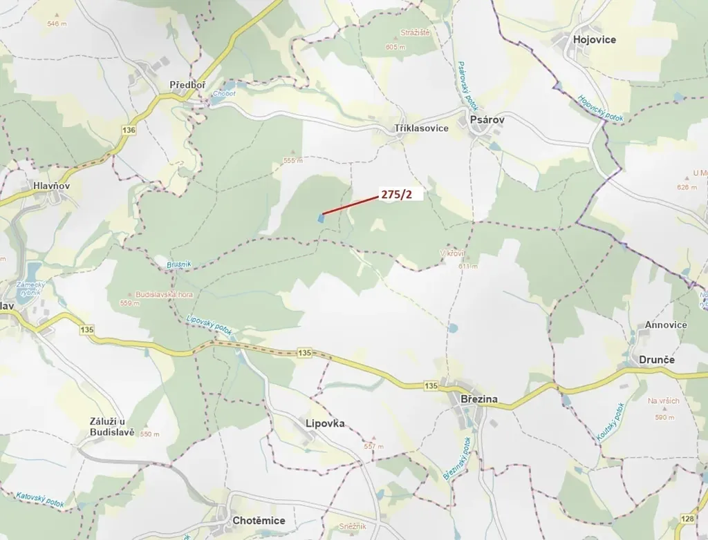 Lesní pozemek o výměře 4568 m2, parcelní číslo 275/2, podíl 1/1, katastrální území Tříklasovice, obec Psárov, obec s rozšířenou působností Tábor, okres Tábor, Jihočeský kraj. Po těžbě.