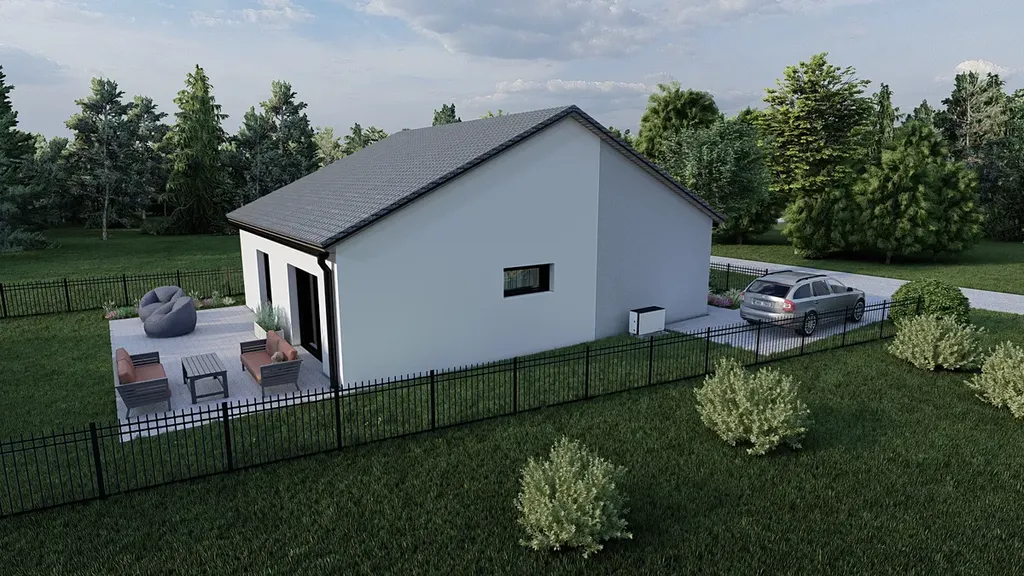 Velikost parcely 465 m2, podlahová plocha domu 120 m2 plus venkovní terasa 18 m2.