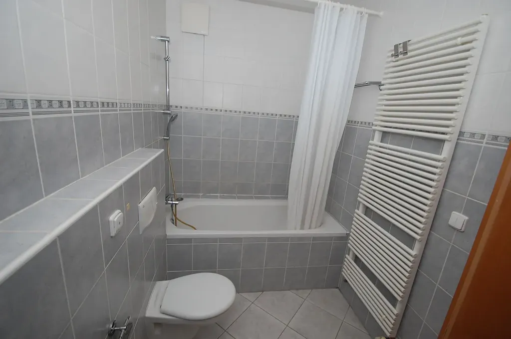 Dále je v bytě druhá koupelna s vanou a oddělená toaleta.