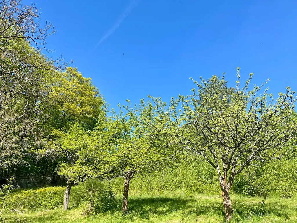 Rozlehlá zahrada s vlastní studnou, udírnou, ovocnými stromy a dřevěnými stavbami (dílna, sklad, přístřešky na dřevo).
