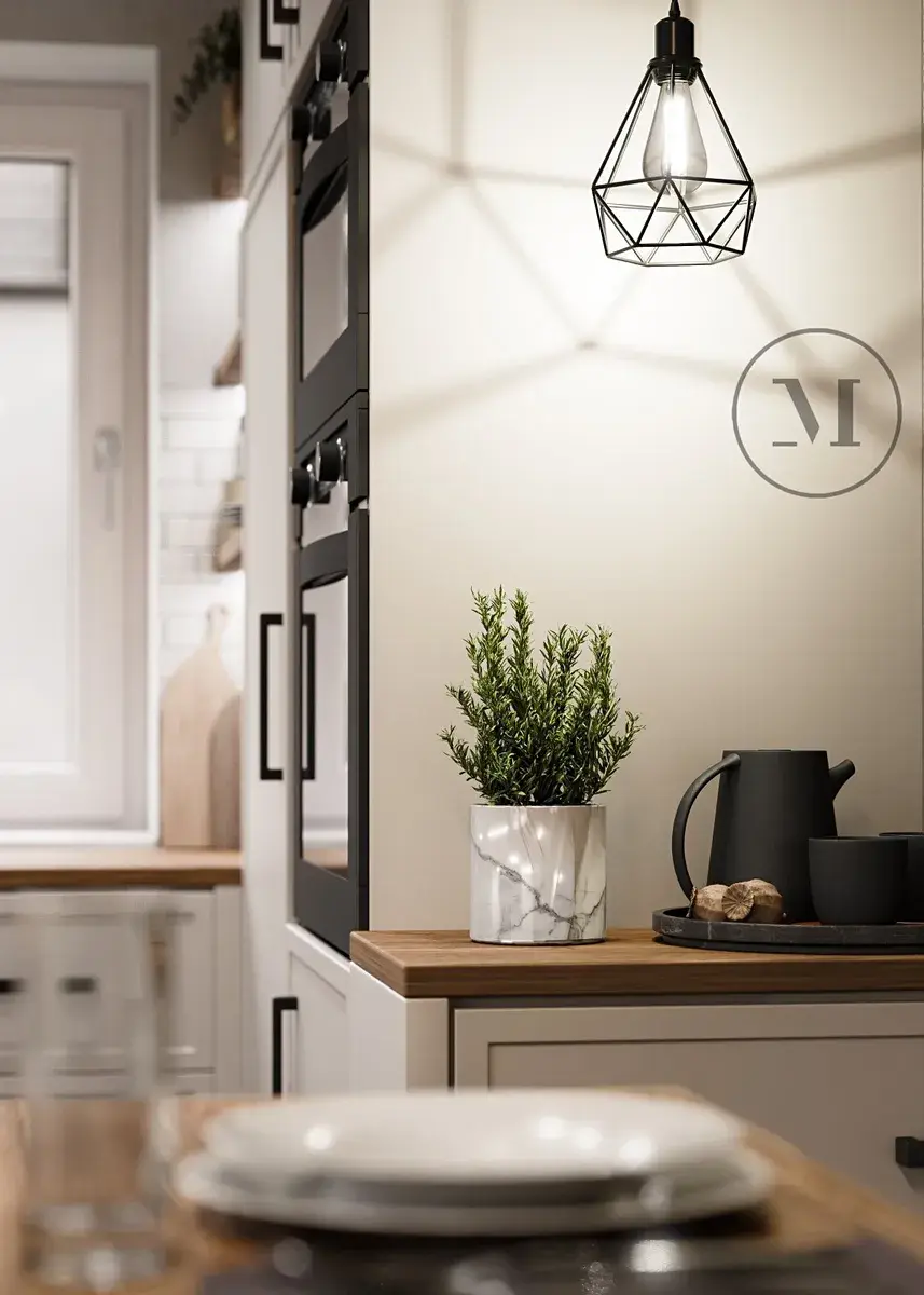 Interiér nabízí vstupní halu, technickou místnost, koupelnu, chodbu, tři samostatné ložnice a obývací pokoj s kuchyňským koutem. Díky velkým oknům je obytný prostor světlý a vzdušný. Z obývacího pokoje a dvou ložnic je přímý vstup na terasu a navazující zahradu, která poskytuje dostatek soukromí i prostoru pro relaxaci.