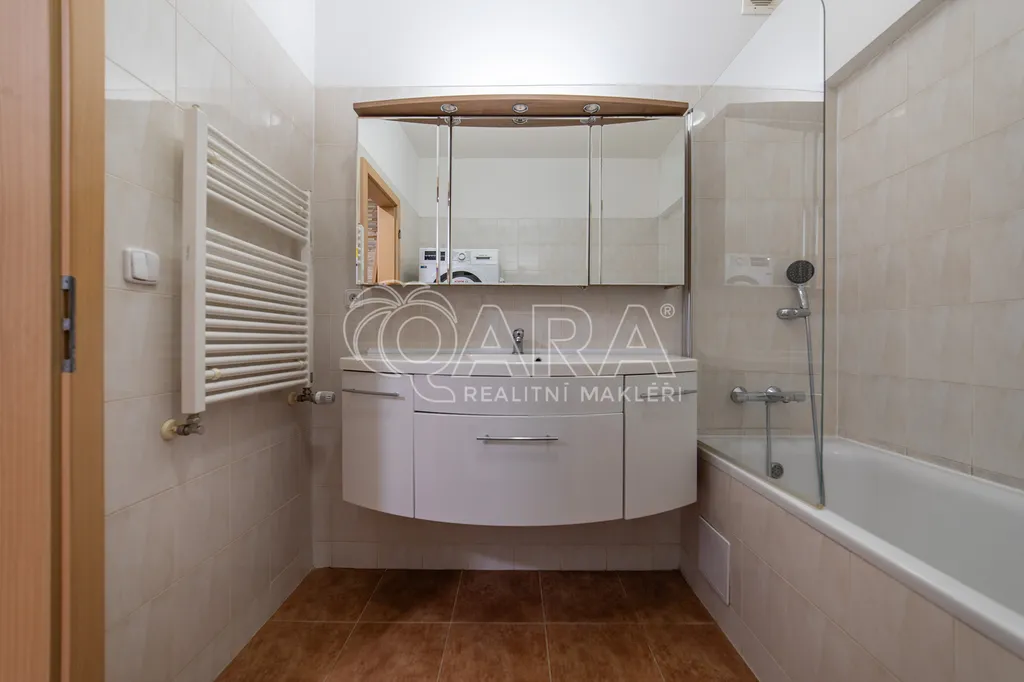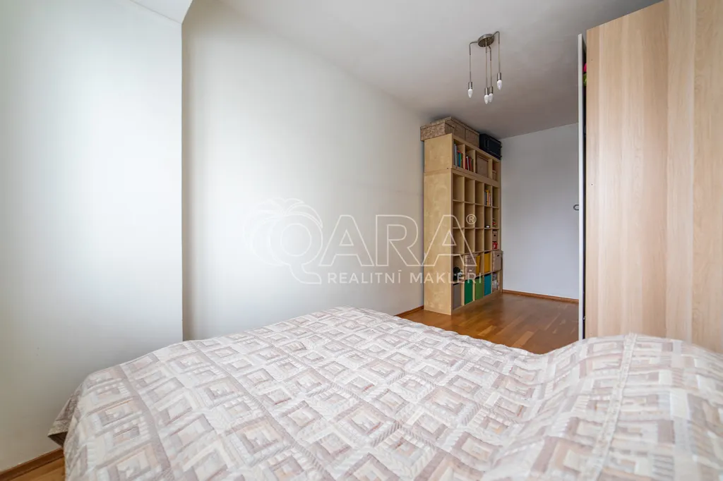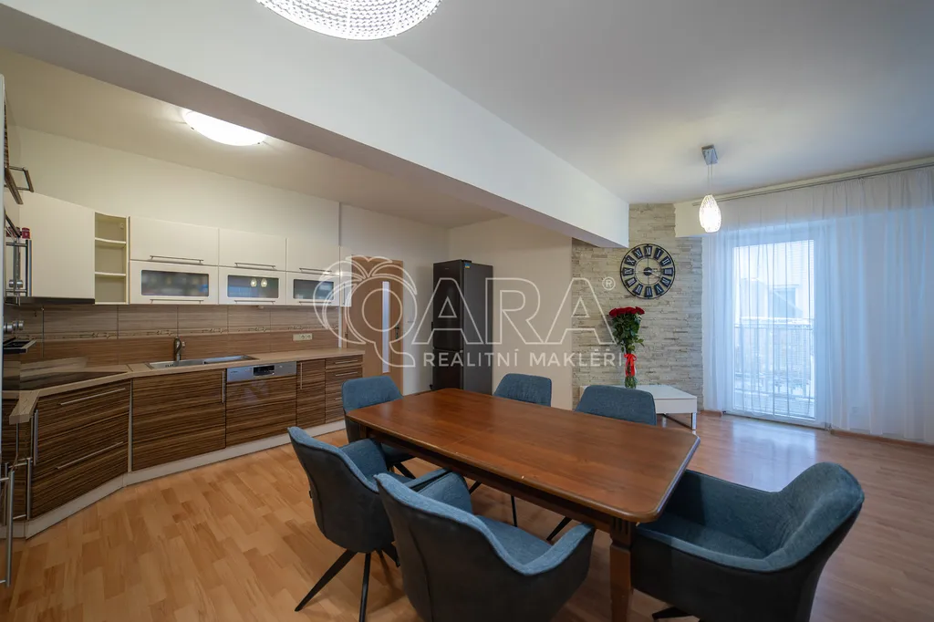 Dominantou bytu je velmi prostorný obývací pokoj přes 40 m2, který je spojený s kuchyňským koutem. Kuchyňská linka je kompletně vybavená vestavěnými spotřebiči. Koupelna a toaleta jsou samostatně přístupné. Pokoje nejsou průchozí. V předsíni se také nachází komora ( šatna) a velká vestavěná skříň.