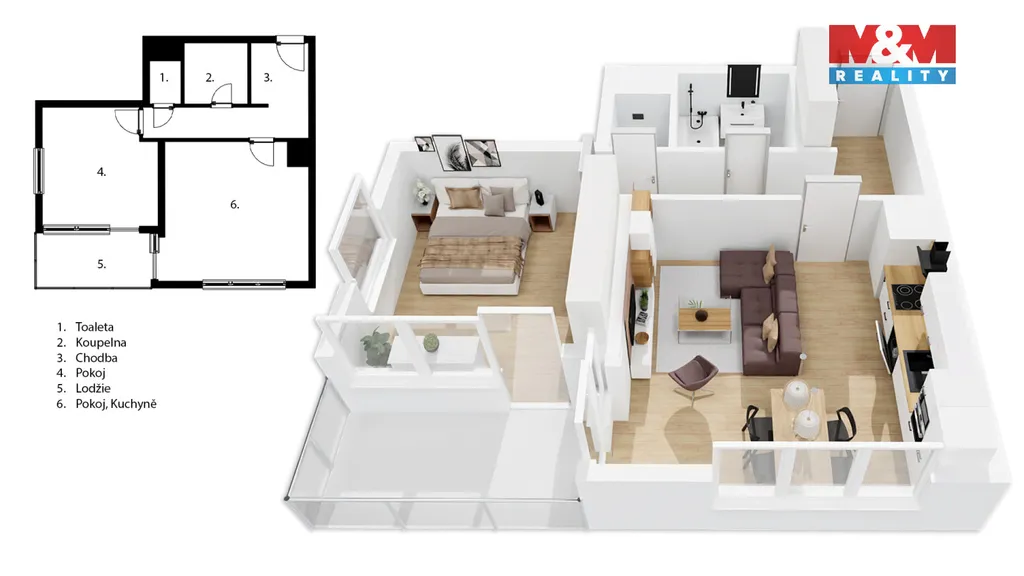 Nabízíme ke koupi moderní byt 2+kk o ploše 59 m² v atraktivní části Mladé Boleslavi II. Byt se nachází v 10. patře jedenáctipatrového cihlového domu s betonovým skeletem, který poskytuje skvělou zvukovou izolaci. Orientace na jihozápad zajišťuje slunný interiér s krásným výhledem. Rohová lodžie s termoskly je přístupná z obou pokojů. V bytě najdete moderní kuchyň s vestavěnými spotřebiči, prostornou koupelnu s vanou a samostatnou toaletu. Úložný prostor zajišťují velké vestavné skříně v předsíni a ložnici. K bytu náleží sklepní koje a kryté parkovací stání. Nízké měsíční náklady dělají z této nemovitosti ideální volbu pro klidné bydlení na kraji města v těsné blízkosti přírody za domem.