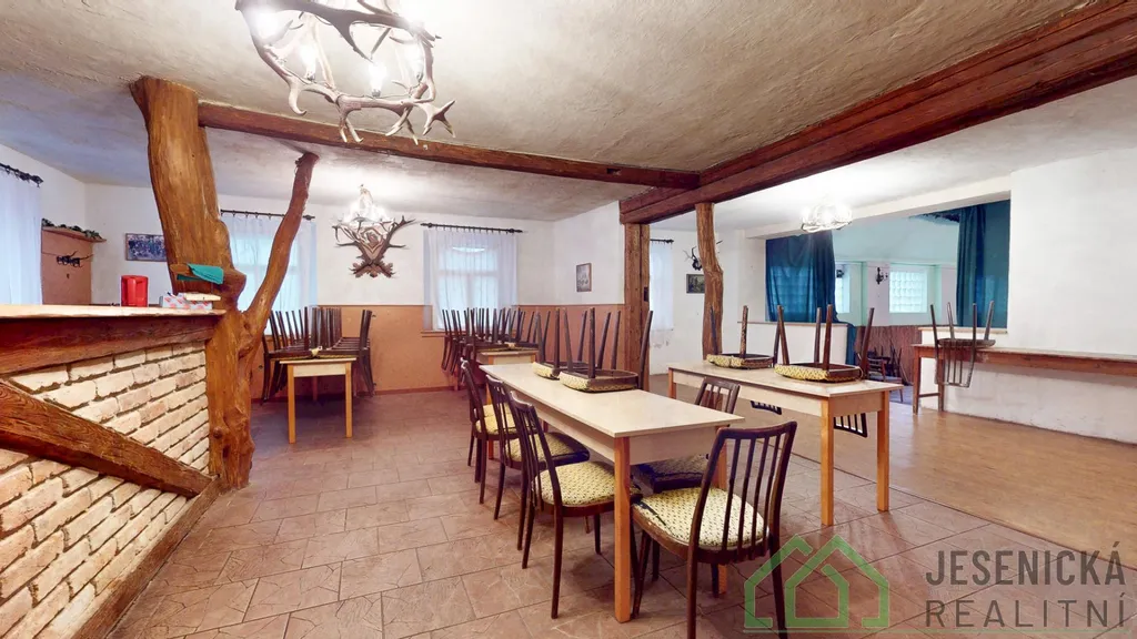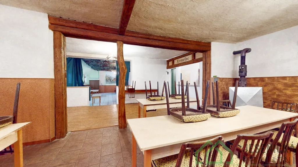 Dále nové omítky a dřevěné obklady a nová komínová vložka na sále. Vytápění domu zajišťují krbová kamna a ohřev vody, bojler. Pokud hledáte dům ve kterém chcete podnikat a zároveň bydlet se svou rodinou, neváhejte a určitě se přijeďte podívat, protože máme co nabídnout. Budeme se těšit na vaší návštěvu. Dům nebyl postižen povodní.
