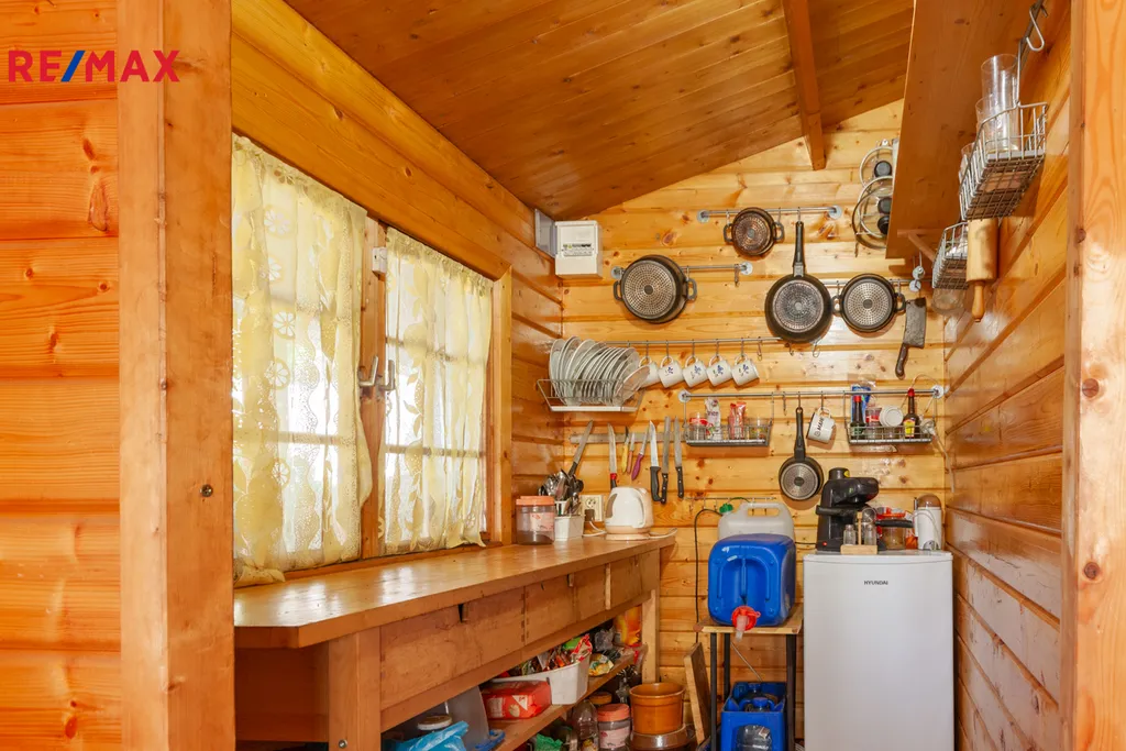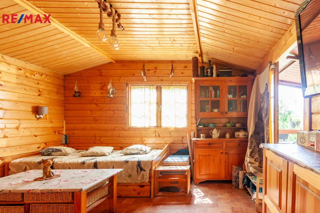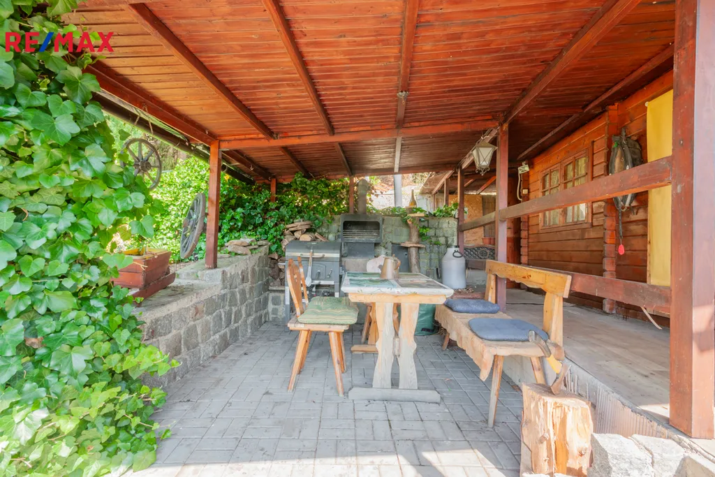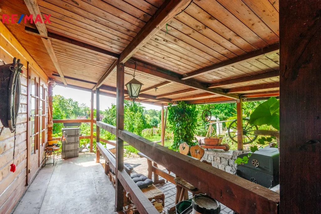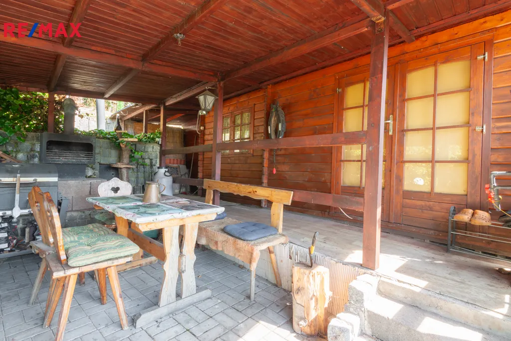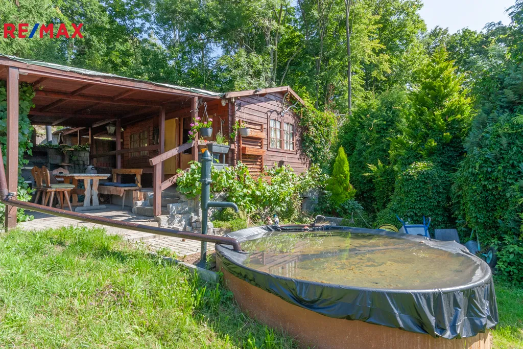 Na pozemku stojí zahradní montovaná chata ARKANSAS se třemi místnostmi na kterou navazuje místnost s koupelnou a WC. Část pod chatou je podsklepená. Na chatu navazuje veranda s venkovním posezením, topeništěm a udírnou. Dále zde najdete bazén 0,9 x 2,5m s pískovou filtrací pro osvěžení v horkých letních dnech. V rohu zahrady je umístěn skleník a zeleninové záhony. Na zahradě se nachází několik ovocných i okrasných stromů. Před chatou je obrostlá stěna z vinné révy. Po zahradě je umístěno automatické zavlažování.