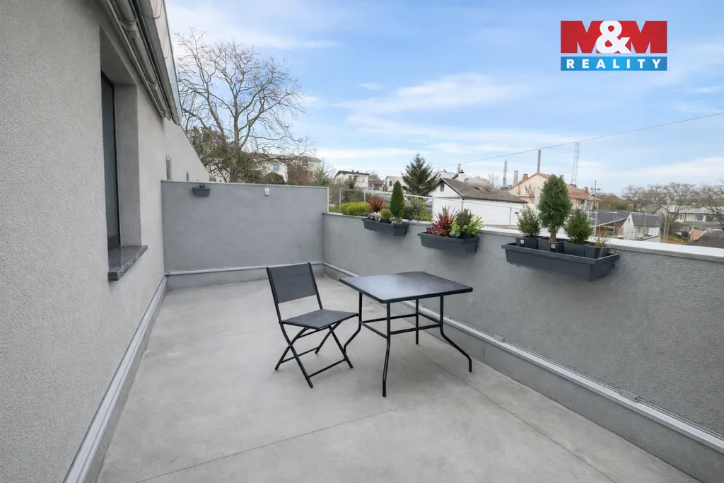 K bytu náleží prostorná terasa o velikosti 14 m², orientovaná do vnitrobloku, která poskytuje dostatek soukromí a klidu. Interiér je vybaven kuchyňskou linkou na míru včetně kvalitních spotřebičů, podlahy kombinují italskou dlažbu a masivní dřevěné materiály. Velké hliníkové výplně s trojsklem zajišťují dostatek světla a tepelnou pohodu. K dispozici je také sklep, kolárna a kočárkárna.