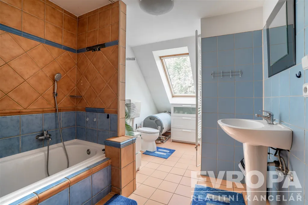 K prodeji nabízíme rodinný dům v ulici Bezručova, který prošel nákladnou rekonstrukcí až do dnešní podoby, v přízemí a podkroví je zhruba 180m2 bytové plochy pro celkem šest pokojů, kuchyň a další prostory. Přízemí je šikovně prosvětlené francouzskými okny na zahradu, obývací pokoj, ložnici a kuchyň doplňuje koupelna, toaleta, technická místnost, šatna a hala. Obývací pokoj je průchozí přímo na kryté venkovní posezení, orientované na jih do klidného vnitrobloku. V podkroví jsou čtyři dětské pokoje a vlastní koupelna s toaletou. Přípojka na obecní vodovod, kanalizaci, k dispozici samozřejmě elektřina a plyn. Ústřední topení na plynový kotel, ohřev vody zabezpečují dva bojlery. Internetové připojení: vysokorychlostní připojení přes optický kabel.