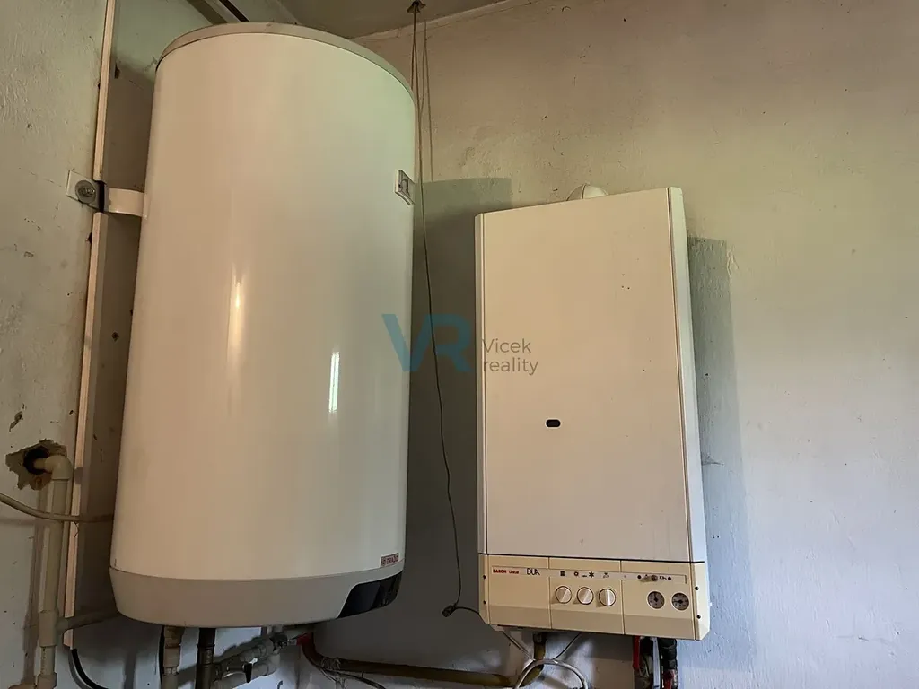 Vytápění je zajištěno kamny na tuhá paliva s rozvodem do ústředního topení.