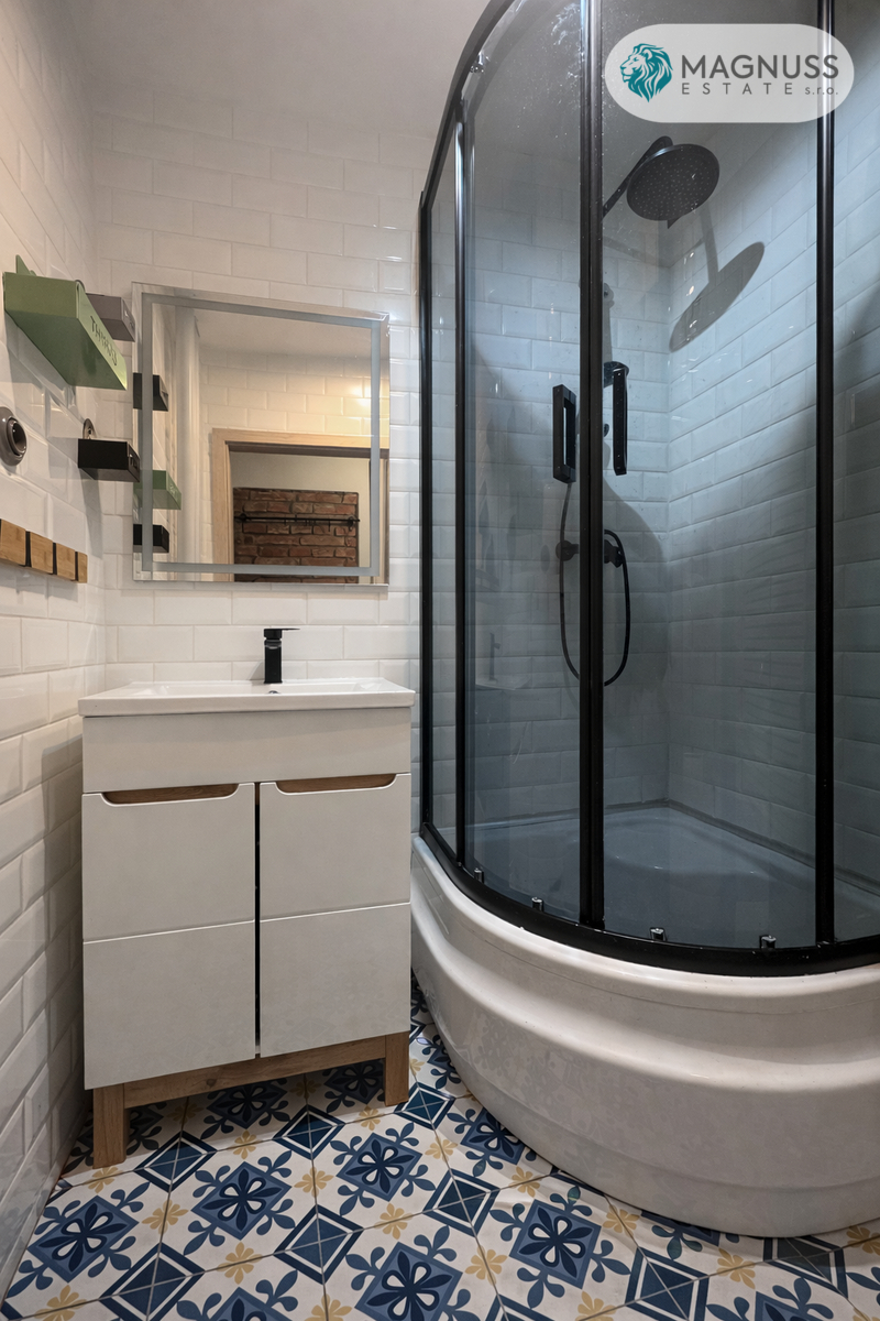 Byt se nachází v 1. patře cihlového domu. Bytová jednotka prošla kompletní, rozsáhlou, zdařilou rekonstrukcí. V rámci rekonstrukce byly provedeny nové omítky, elektroinstalace, rozvody vody a odpadů, podlahy parkety po renovaci a keramická dlažba. Součástí bytu je kuchyně na míru s vestavěnými spotřebiči.
