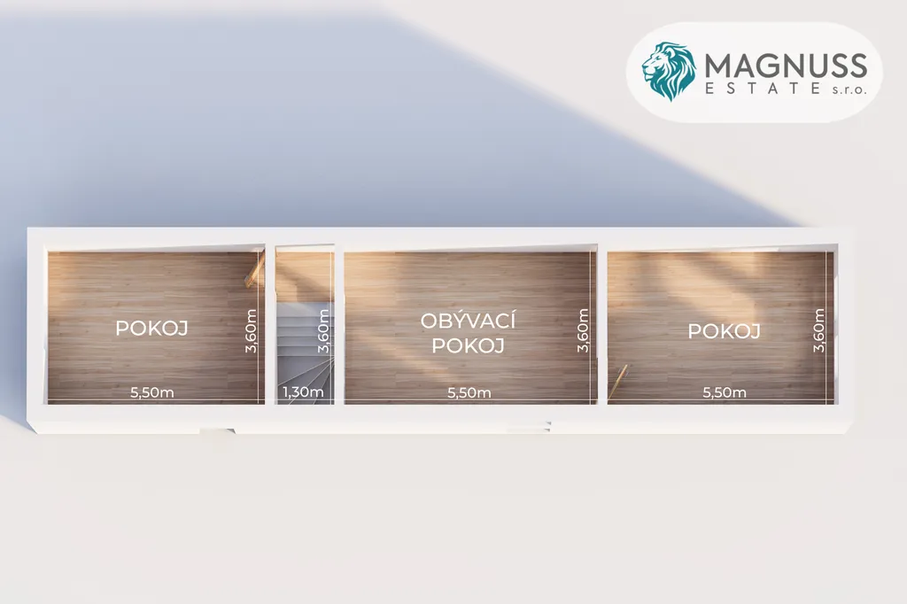 • 2. NP: prostorný obývací pokoj a dva dětské pokoje