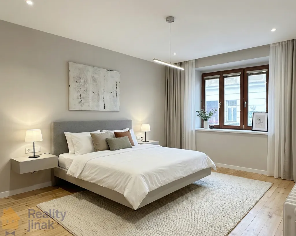Dispozice bytu nabízí samostatnou ložnici, samostatnou kuchyni a koupelnu s toaletou, kde jsou již připraveny vývody na pračku. Praktickým prvkem interiéru je také malá komora, kterou lze využít jako šatník. Celková plocha bytu činí 38,18 m2 a tato výměra zahrnuje také sklep, který se nachází na stejném podlaží hned naproti vstupním dveřím do bytu. Nemovitost není zatížena žádným věcným břemenem ani jinými právními závadami a je připravena k okamžitému předání i zahájení stavebních úprav. Přístup do budovy je prakticky vyřešen jak na klíč, tak na číselný kód, což je značná výhoda pro bezkontaktní správu hostů, v případě pronájmu bytu. Pro lepší představu o potenciálu tohoto prostoru jsou v inzerátu přiloženy vizualizace, které ukazují, jak může byt vypadat po dokončení rekonstrukce.