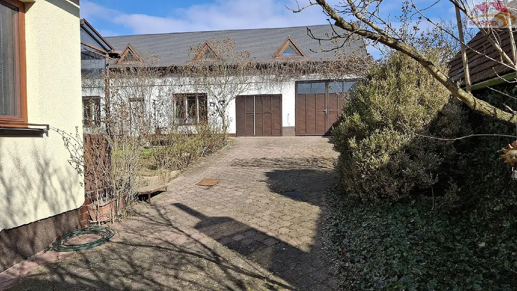V hospodářské budově se nacházejí dvě garáže, montážní jáma, polní kuchyně, dílna, skladiště. Přístavbu je možné využít na podnikání, bydlení, nebo jako skladiště.