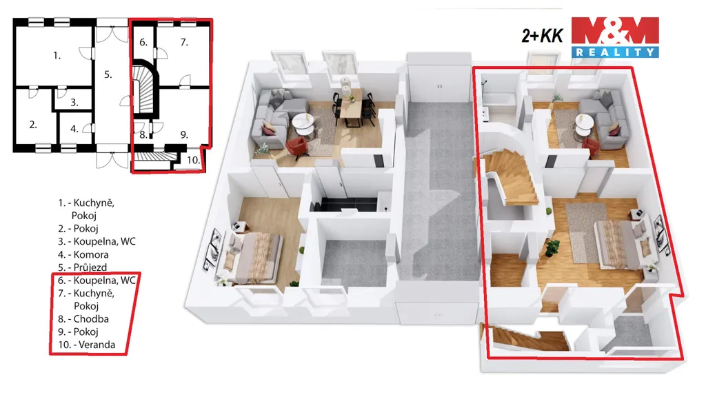 Nabízíme k prodeji investičně zajímavý byt 2+KK o celkové ploše 57 m² v centru Červeného Kostelce. Byt se nachází v bytovém domě se čtyřmi jednotkami, který je součástí klidné lokality obklopené rodinnými a bytovými domy. Cihlový dům je řadový, částečně podsklepený, s dvěma nadzemními podlažími a půdou. Byt je umístěn v 1. podlaží a nabízí vstupní chodbu, hlavní pokoj, druhý pokoj s kuchyňským koutem a koupelnu s WC. Součástí bytu je také vestavěná veranda. K bytu náleží část společných prostor, sklep a dvorek se zděnou kůlnou. Byt prošel částečnou rekonstrukcí a je napojen na elektrický proud a veřejný vodovod, s možností připojení na plyn. Neváhejte a domluvte si prohlídku!