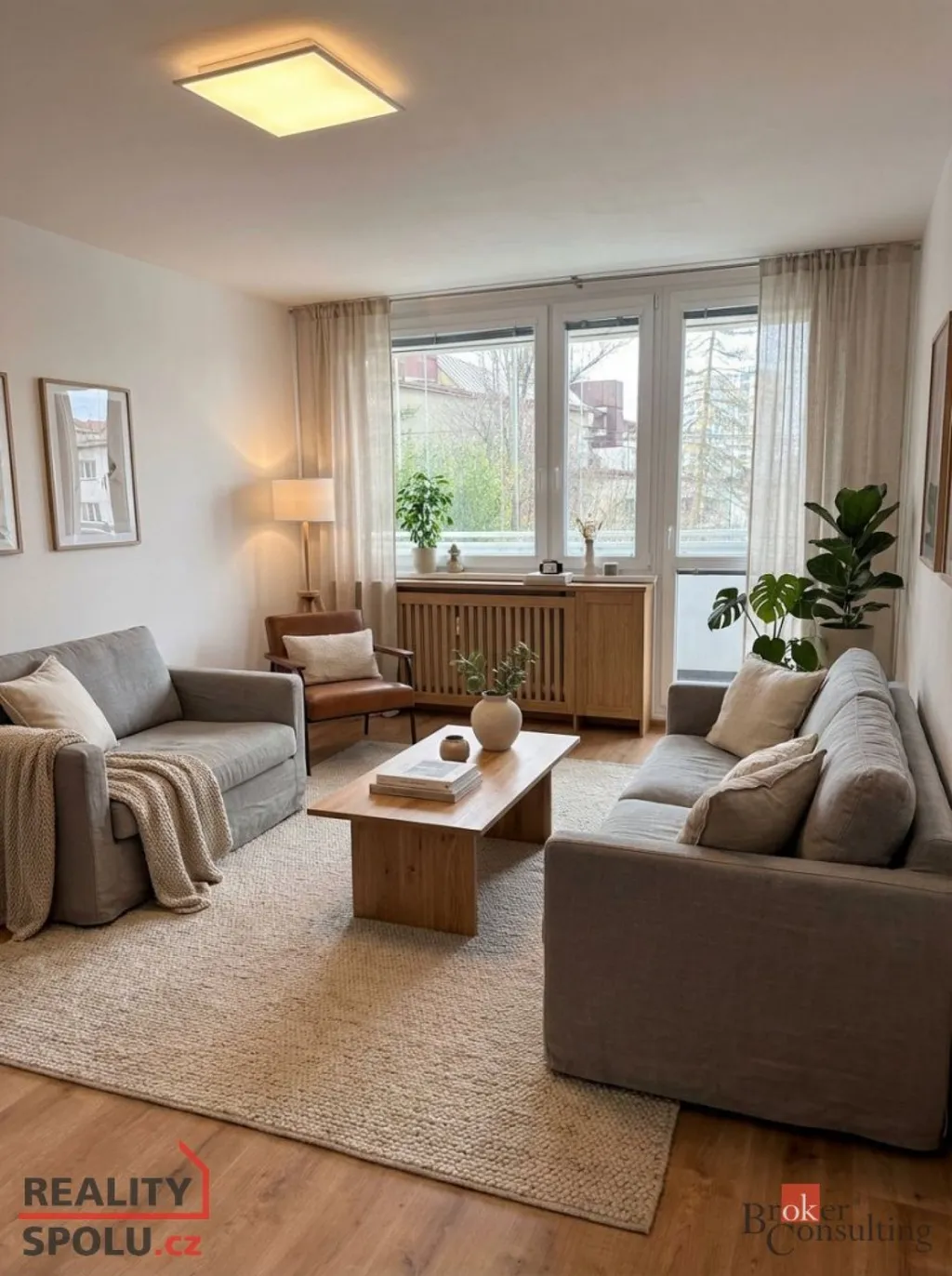 Dispozice bytu zahrnuje prostorný obývací pokoj (21 m²) a dva samostatné pokoje (12 m² a 12,5 m²), což z něj činí ideální bydlení pro rodinu nebo pár. Součástí bytu je také komora poskytující praktický úložný prostor a na chodbě se nachází vestavěná skříň. K bytu náleží lodžie o ploše 6,8 m², vhodná k relaxaci či sušení prádla, a dále sklep.