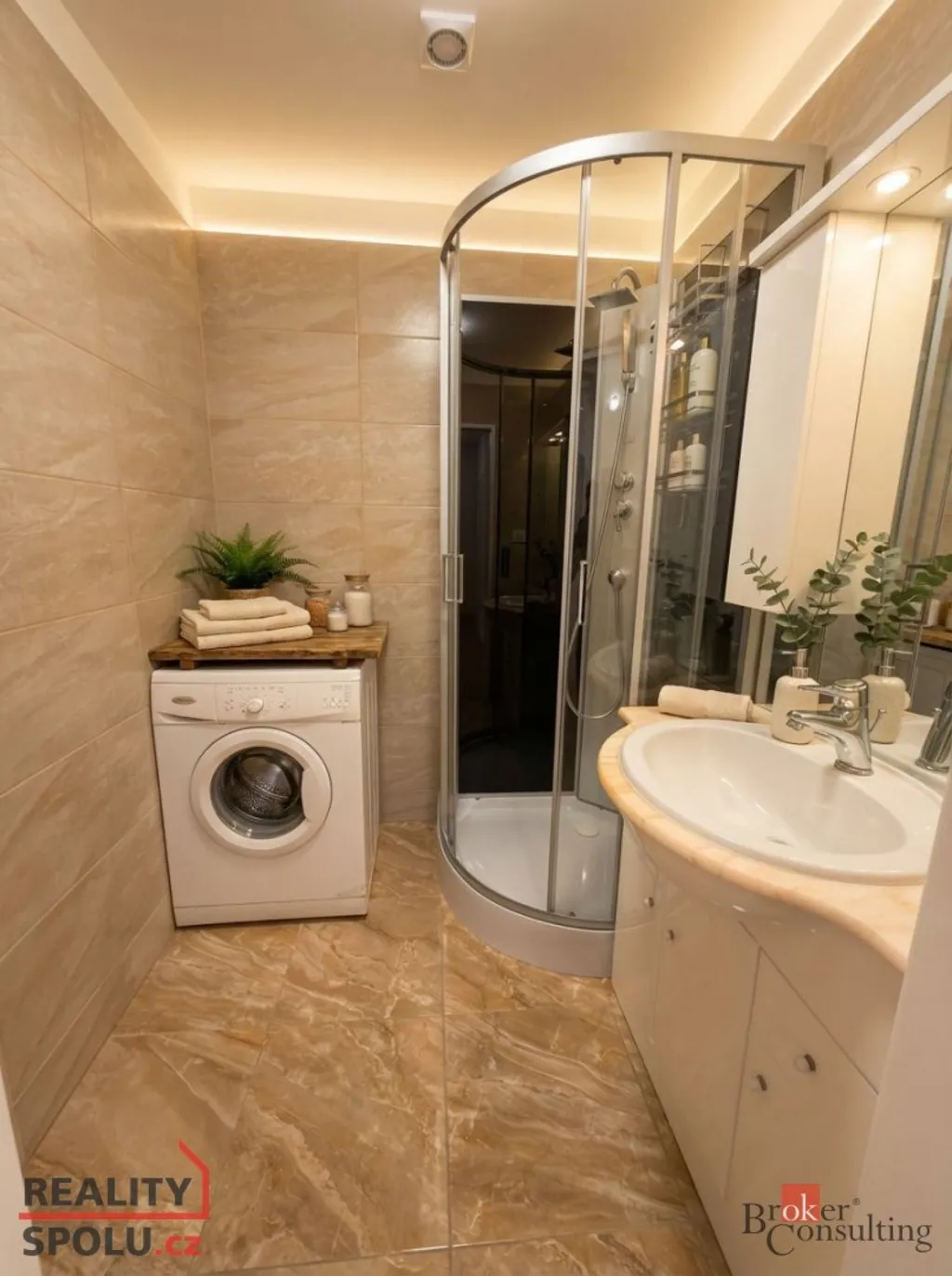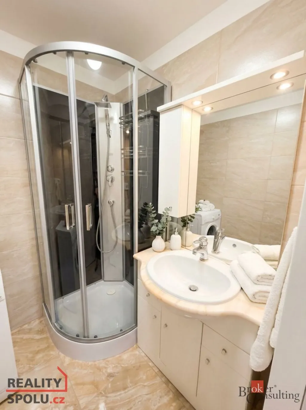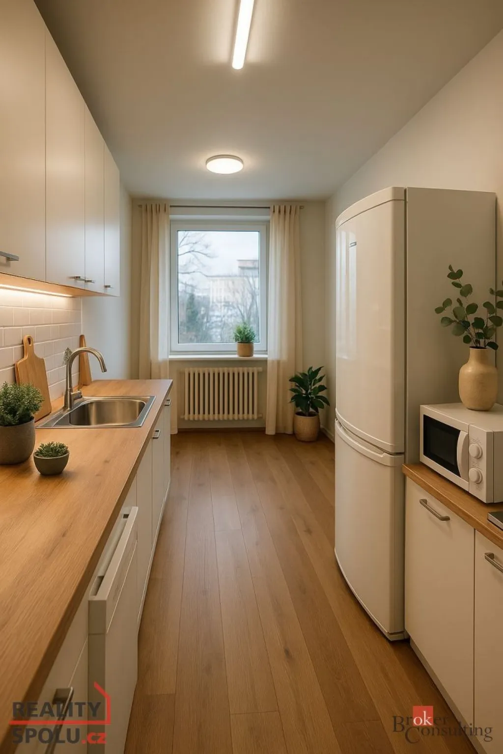 Byt je nově zrekonstruován a částečně vybavený. Kuchyň o velikosti 9 m² je osazena kuchyňskou linkou se spotřebiči – plynový sporák s elektrickou troubou, digestoř, myčka na nádobí, mikrovlnná trouba, kombinovaná lednice s mrazákem a pračka.