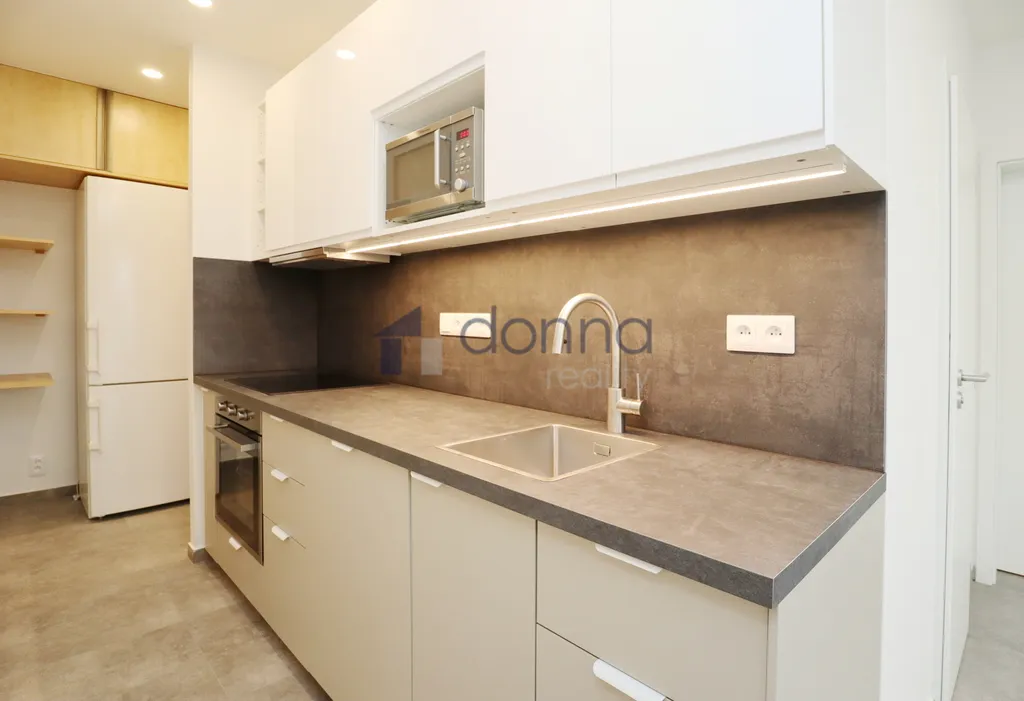 Byt po kompletní rekonstrukci má plně vybavenou kuchyň vestavnými spotřebiči, částečně zařízený nábytkem. V bytě je dostatek úložných prostor, vestavěné skříně.