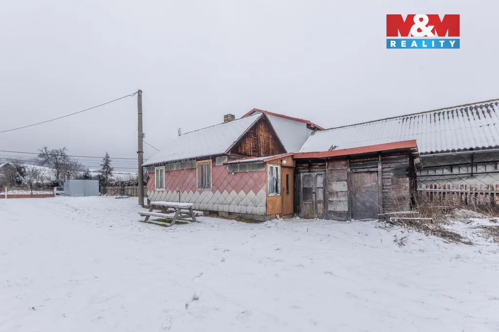 Nově nabízíme na prodej menší chaloupku ze dřeva a z venku podbitou eternitem. Výhodou je velký prostorný pozemek až přes 1400 m2. Chalupa nabízí dispozici 1+1 bez sociálního zařízení o velikosti 48 m2. Ve vnitř jsou dělané nové zdi, elektroinstalace, podhledy jsou z palubek. K domu je zavedena přípojka voda. Momentálně v chalupě nejsou odpady. Vytápění je řešeno kamnami na tuhá paliva.