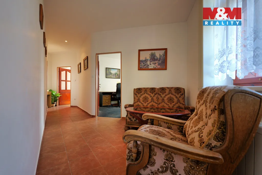2. nadzemní podlaží – bytová část (10 místností): mezonetový byt 4+1 s koupelnou (rohová vana s vířivkou), WC, vlastní kotelnou a obrovskou terasou. Vzdušný obývací prostor, 2 samostatné pokoje a půda s možností vestavby další místnosti.