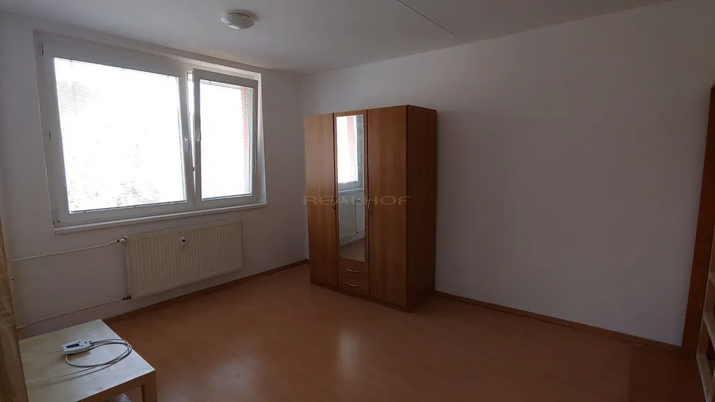 Dispozice: vstupní předsíň, pokoj 18 m², kuchyně se vstupem na balkon, koupelna se sprchovým koutem a WC.