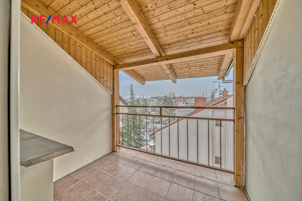 Byt se nachází ve 4. nadzemním podlaží cihlového domu bez výtahu. Dispozice je praktická a nabízí dostatek soukromí. Obývací pokoj je propojen dřevěným schodištěm s úložným/podkrovním prostorem nad bytem. Dále byt disponuje samostatným pokojem, kuchyní se vstupem na lodžii, koupelnou s rohovou vanou a samostatným WC.